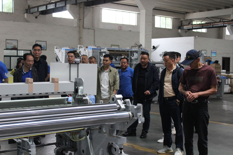 6月14日,為增強織造紡織行業(yè)上下游交流互動,由盛澤織造商會榮譽會長吳留生先生、會長史連明先生帶隊,商會監(jiān)事長、顧問、書記、秘書長、常務副會長、副會長、監(jiān)事及理事會員一行50余人蒞臨青島天一紅旗紡機集團有限公司參觀指導。公司董事長劉培德,銷售總監(jiān)李德勝等領導與商會來賓齊聚一堂,共同參觀了天一紅旗先進的制造工廠,共敘友誼,齊繪藍圖。